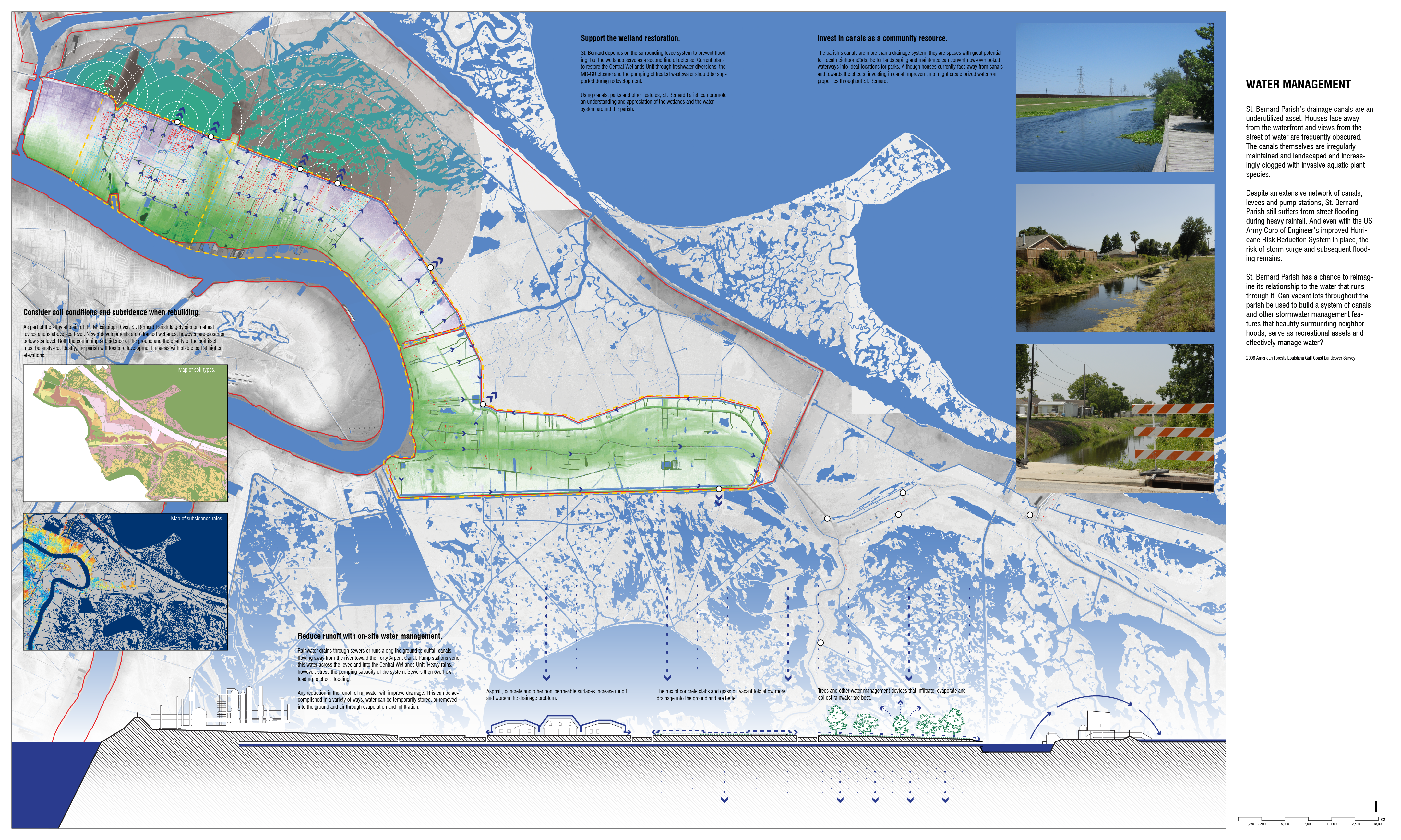 A land use plan developed for St. Bernard Parish, Louisiana, investigating best use for the 2,000 vacant lots left in the wake of Hurricane Katrina. With a transfer of ownership impending from the state Louisiana Land Trust to the St. Bernard Parish municipal government, the plan sought a systemic, affordable use that would also provide value and service to the community.